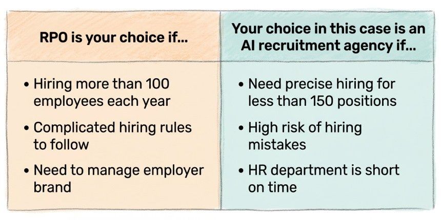 - AI makes the process smoother, and RPO takes care of the rest. For moderate hiring, AI platforms are often cheaper than traditional outsourcing.