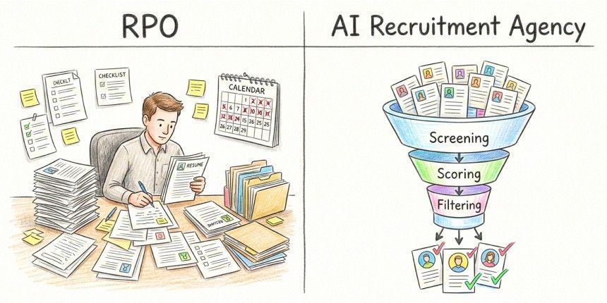 RPO can add to or take the place of your recruiting team with people. It is meant for big and regular hiring needs. AI recruitment agencies automate the early steps like screening and interviewing, before anyone looks at a resume. Both methods help at different stages of hiring, so it's better to ask where your hiring process is failing.