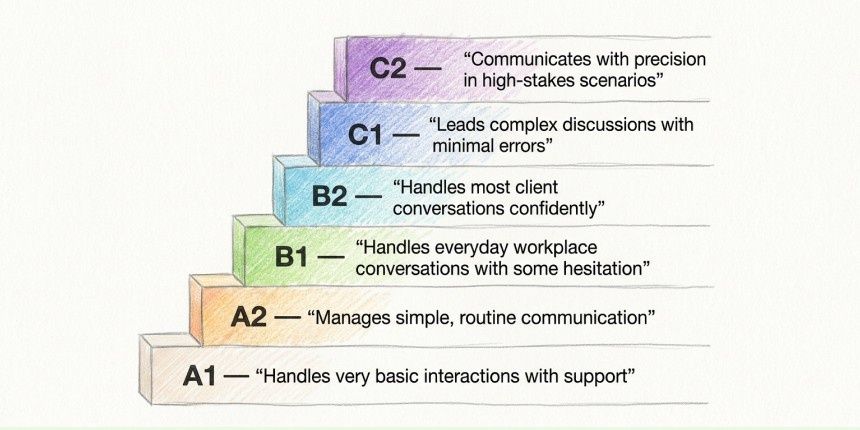 - CEFR alignment: The Common European Framework of Reference for Languages (CEFR) runs from A1 (Beginner) through C2 (Proficient) and is recognized globally across industries and borders. When a test maps to CEFR, hiring teams get a shared vocabulary for what a candidate can actually do in the language, not just a score that requires interpretation.