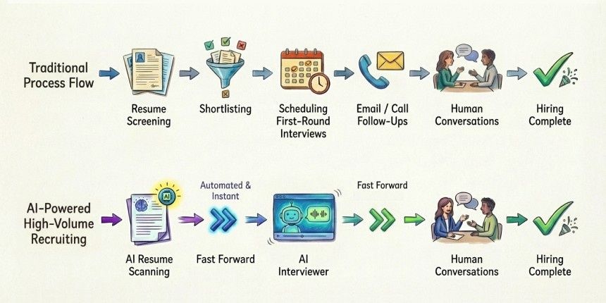 2. How does AI speed up time-to-hire in bulk recruitment?