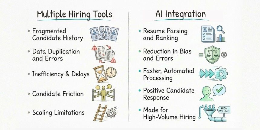 Many companies stack up tools over time. It's not as if overnight, you add a job-board plugin, then an assessment tool, a scheduling app, a video-interview platform, - already a mouthful, ain’t it, but wait, there’s more - a resume scraper, a spreadsheet tracker, a separate CRM, and maybe just another compliance audit tool to top it off. Lo and behold, before you know it, you are juggling eight or ten logins just to hire a single person. Sounds unsmart? Probably because it is.