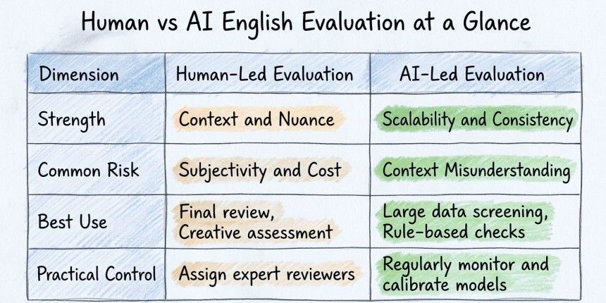 - AI English assessment tools deliver a consistent baseline at scale but need monitoring and a human review step.