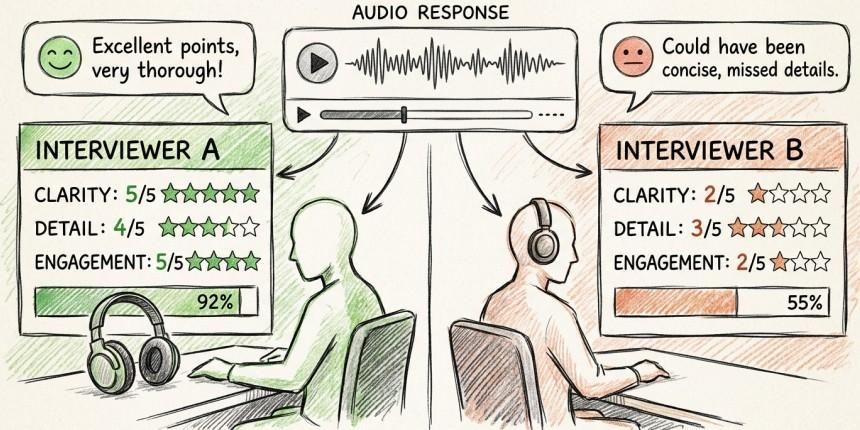 Research in Frontiers in Psychology found real differences in how raters score spoken English. Accent familiarity plays a big part. Raters tend to score unfamiliar accents lower, even when the message is perfectly clear. In an English communication test for interview settings, that's a serious problem. Two equally strong candidates can walk away with very different results based purely on who interviewed them.