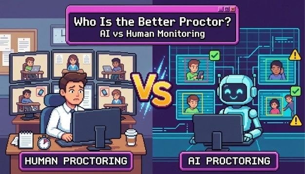 Human proctoring is the conventional method of exam supervision that most of us have experienced. A trained proctor monitors candidates either in person at a test center or remotely through a live video feed. They observe behavior, verify identity, and intervene if something seems off.