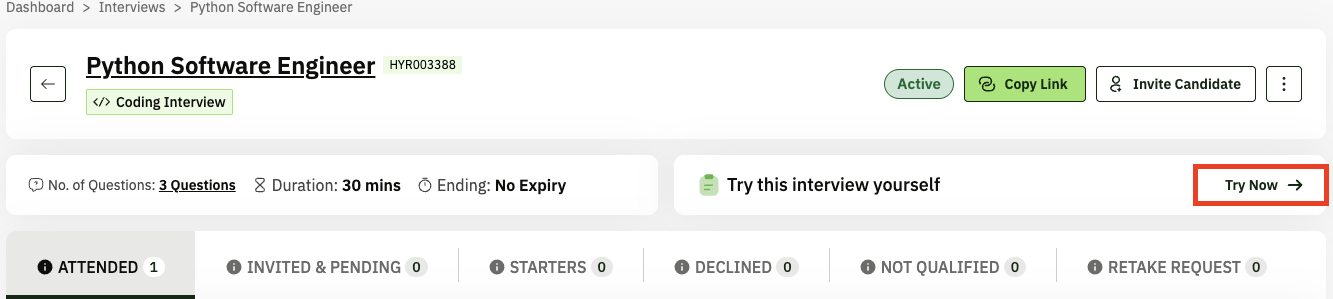 Yes. Just like the AI Video Interviewer, you can preview the coding interview flow from the candidate’s perspective before making it live.