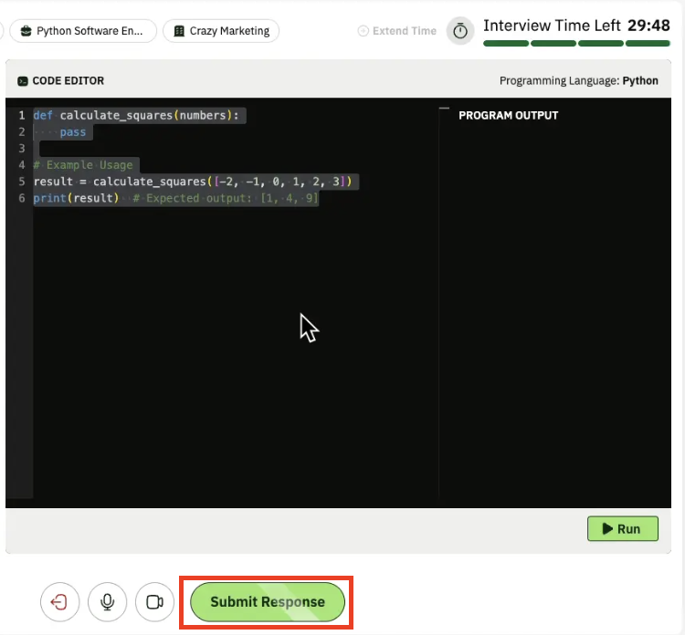 You can click “Run” to check the output of your code.
