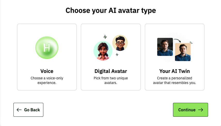 Voice Only: Select just the voice without an avatar for a simple, audio-based experience.