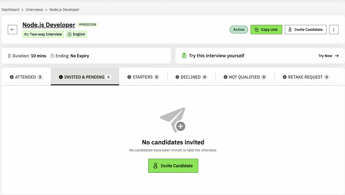 With just a few clicks, the candidates will receive their invitations via email and can take the interview.