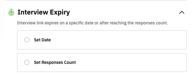 A) Expiry Date: You can set an expiry date for the interview link, which will automatically stop the interview after a certain period.
