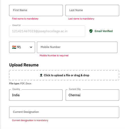 Account Creation: They can either import their details by linking their LinkedIn profile or manually input their information. During this process, we check details such as phone number, email, full name, and other relevant information.