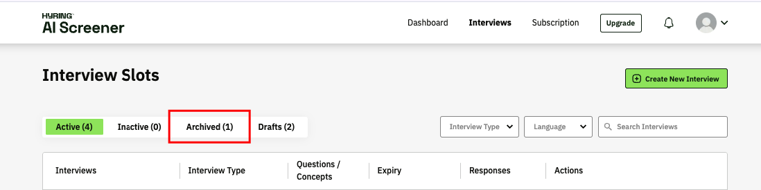 Go to your Interview page from the Dashboard and click on the Archived section.