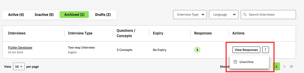 Alternatively, you can unarchive the interview and proceed with regular viewing from your Interviews section.