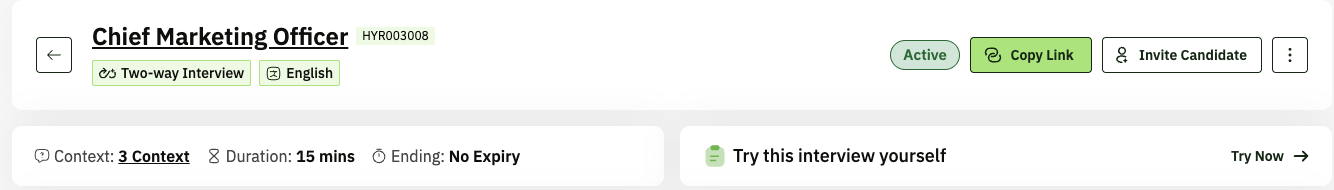 You can share your interview link across various platforms, including job boards like LinkedIn, Naukri, and Indeed. You can do this by clicking Copy Link in your preferred location.