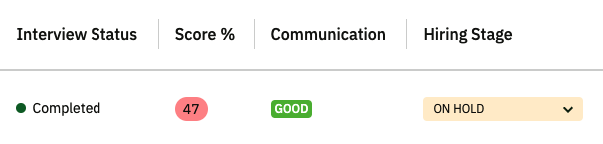 On Hold: Candidates whose evaluation has been temporarily paused—often due to pending information or shifts in hiring priorities. They are not actively under consideration but haven’t been ruled out entirely.
