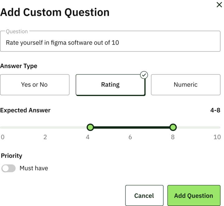 This ensures that your screening remains highly relevant to the role, while still being quick and simple to set up.