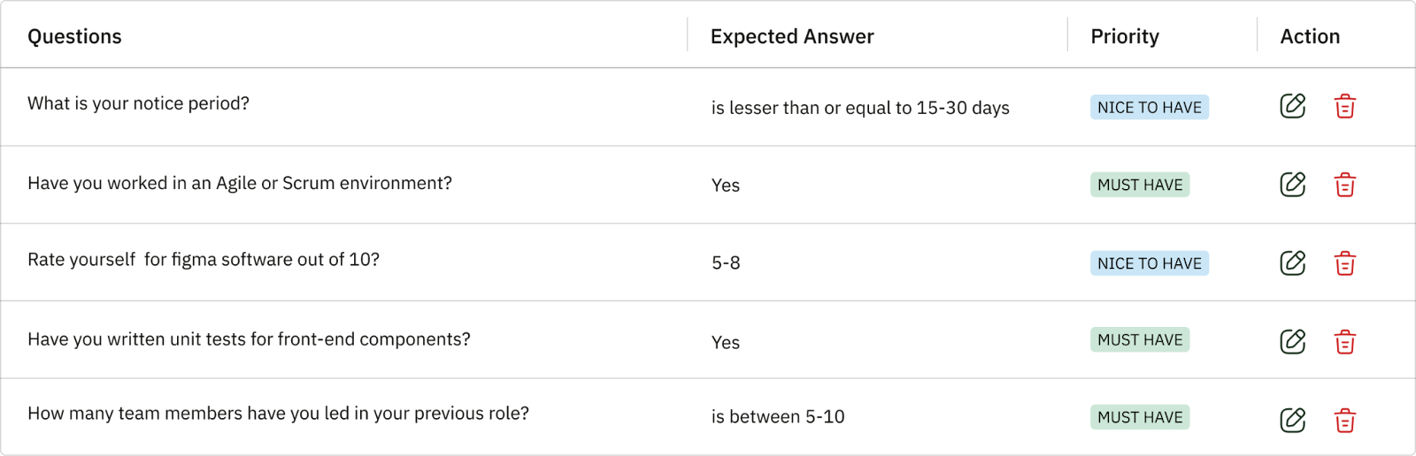 This helps ensure that only candidates who meet your essential criteria move forward, saving time and improving screening accuracy.