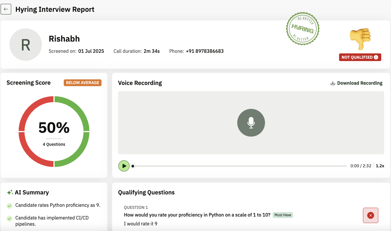 Yes. You can view the complete interview responses and scores for all candidates, regardless of whether they were qualified or not.