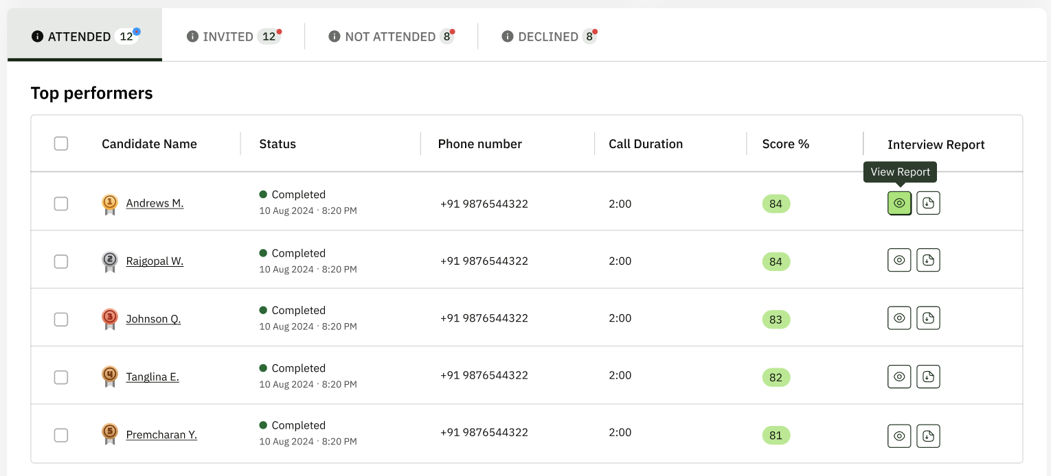 The highest-scoring and most aligned candidates appear first in your dashboard list.