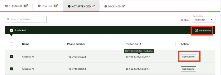 Yes. Go to the Responses section of the specific interview, and you’ll find the list of candidates who didn’t complete the call.