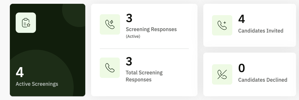 Your Phone Screener dashboard gives you a quick, actionable overview of all your screening activity in one place. Here’s what you can expect: