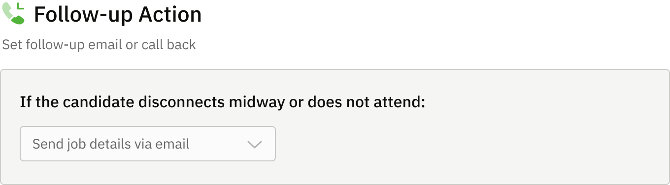 If a candidate misses the call or disconnects midway, the platform provides you with several options to ensure they still have a chance to complete the screening.